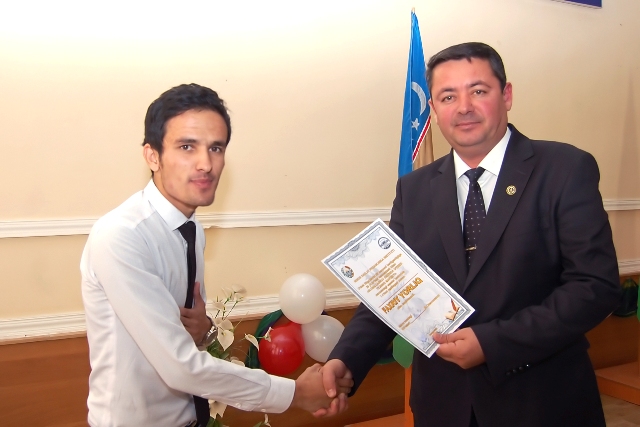 Илаж даўамында институт студент-жаслары арасында сәне мүнәсибети менен өткерилген «Глобалласыў дәўиринде өзбек тилиниң дәрежеси» («Глобаллашув даврида ўзбек тилининг мавқейи») атамасындағы эсселер таңлаўында жеңимпаз болған студентлерға диплом ҳәм естелик саўғалары тапсырылды.