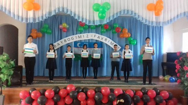 Байрамды мектеп директорының руўхыйлық ҳәм ағартыўшылық ислери бойынша орынбасары Ж.Сейтимбетова ашып берди ҳәм жыйналғанларды байрам менен қутлықлап, байрағымыздың әҳмийети ҳаққында кеңнен тоқталып өтти.