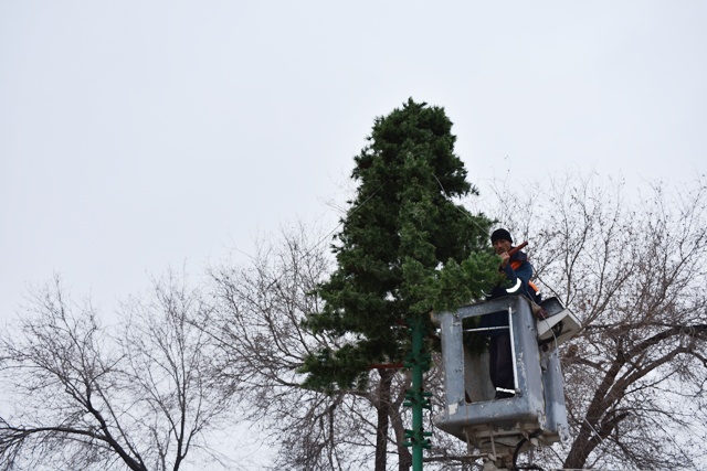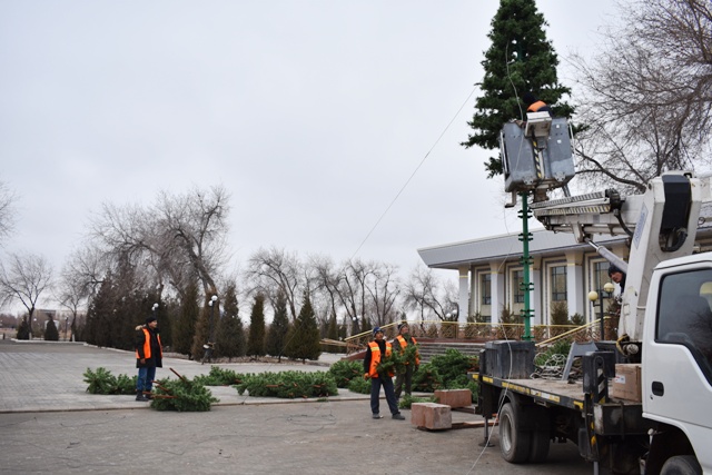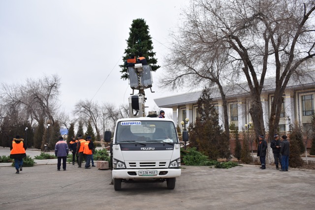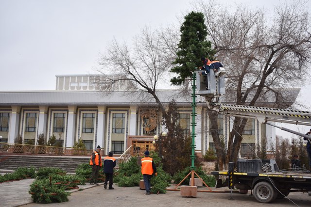 Бүгин, 14-декабрь күни театр алдына бийиклиги 9 метрден аслам болған жаңа жыл аршасы орнатылмақта.