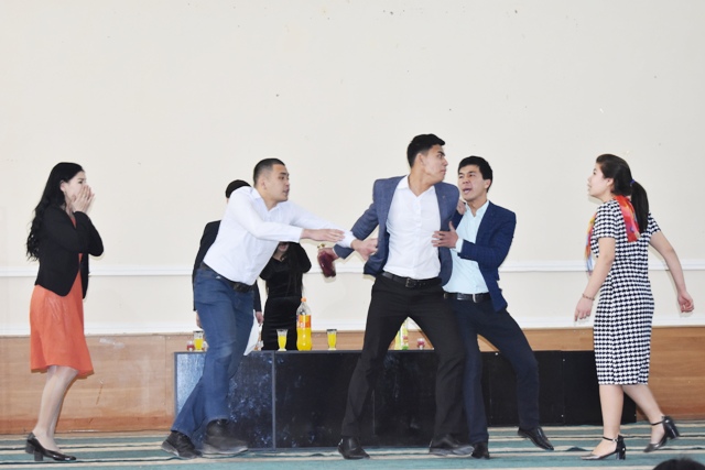 – Бүгин студентлеримиз қысқы рейтинг баҳаларын алыўы ушын В.Шекспирдиң «Ромео ҳәм Джульетта», П.Тилегеновтың «Ҳүждан» музыкалық драмасы ҳәм Т.Мәтмуратовтың «Жақсы адамның жүреги» философиялық драмасынан үзиндилер таярлап келген. Оларды институттың студентлери нәзерине усынбақтамыз. Биз бул арқалы филиалымыз студентлериниң берген билим ҳәм көнликпелеримизди өзлестириў дәрежеси, актёрлық шеберлигине баҳа бере аламыз ҳәм институт жасларының бос ўақытларын мазмунлы өткериўге үлес қосқан боламыз, – дейди кафедра баслығы Л.Оразымбетова.