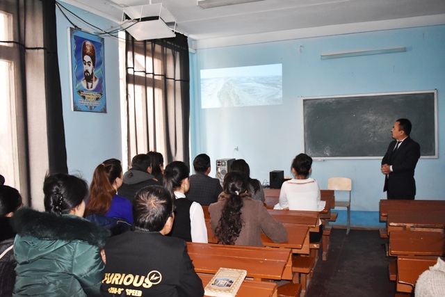 Институтымыздың филология факультети өзбек тили ҳәм әдебияты тәлим бағдары студентлериниң бос ўақытларында Өзбекстан миллий мәлимлеме агентлигиниң хабаршысы, белгили Аралтаныўшы қәниге Есимқан Қанаатов «Аралға өмир қайтпақта» атамасында семинар өткерди.