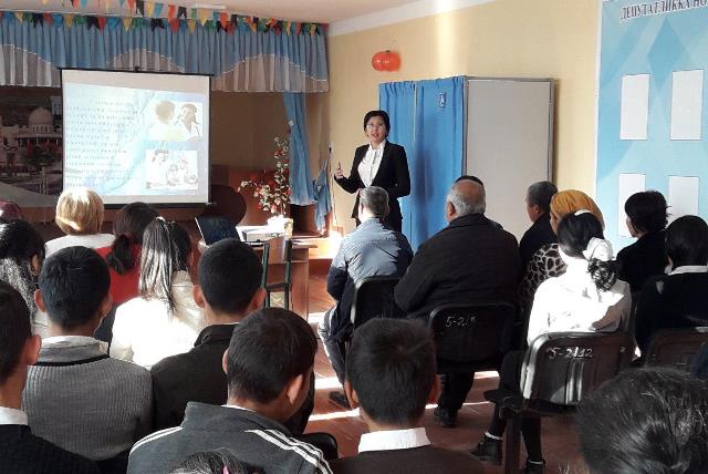 Буннан соң НМПИ докторанты А.Турекеева сөзге шығып, саламат турмыс тәризин қәлиплестириў бойынша муғаллим ҳәм оқыўшыларға презентация ҳәм видео роликлер арқалы кең түсиниклер берип өтти.