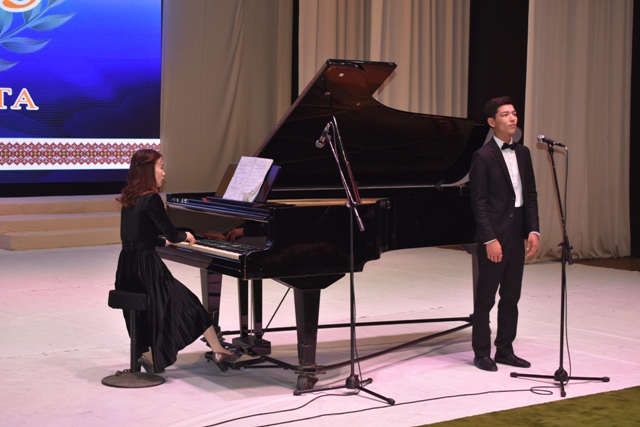 Илаж көркем өнер шеберлери ҳәм институттың «Тумарис» қосық ҳәм аяқ-ойын халық ансамблиниң атқарыўындағы концерт бағдарламасы менен даўам етти.