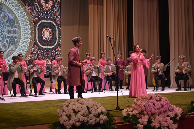 Илаж көркем өнер шеберлери ҳәм институттың «Тумарис» қосық ҳәм аяқ-ойын халық ансамблиниң атқарыўындағы концерт бағдарламасы менен даўам етти.