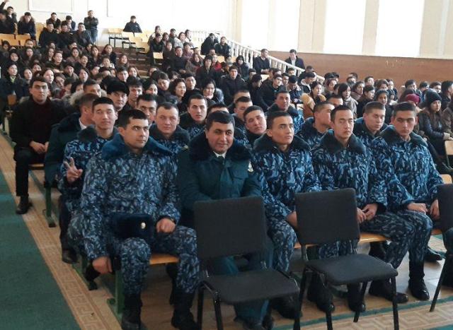 Сондай-ақ, мүддетли әскерий хызметти атқарып келген студентлер әскерий турмыстағы қызықлы ўақыялар көрсетилген сахналық көринислерди жыйналғанлардың нәзерине усынып, әскерий таярлық бойынша көнликпелерин көрсетти.