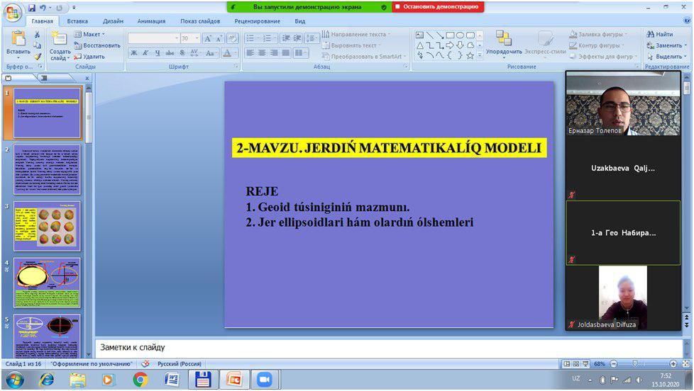 Институттың тарийх факультетинде 15-октябрьден баслап быйылғы оқыў жылында оқыўға қабыл етилген 1-курс студентлеринен 6 топарда сабақлар «Zoom» платформасы арқалы онлайн тәризде өткерилмекте.