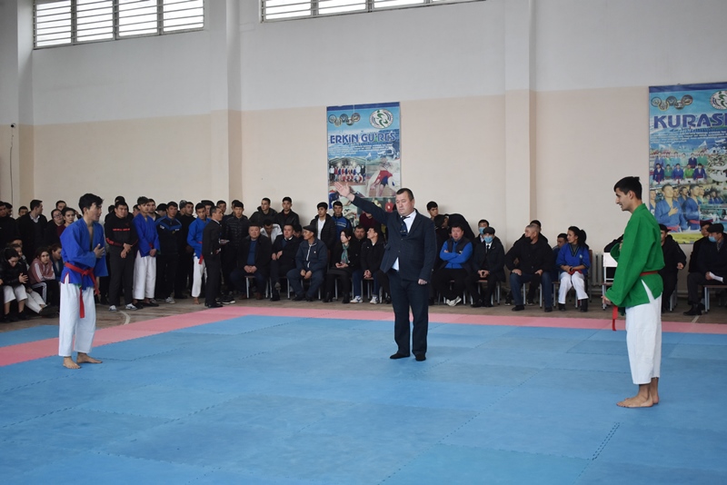 Жарысты институт ректоры Б.Отемуратов ҳәм Өзбекстан Кураш ассоциациясы Қарақалпақстан бөлиминиң атқарыўшы директоры С.Жүсипбеков ашып берди ҳәм қатнасыўшыларға табыслар тиледи.