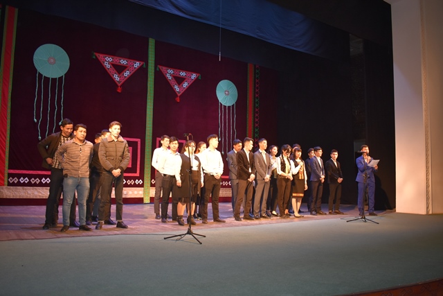 Таңлаўда студентлер сәлемнама, биатлон ҳәм музыкалық көринис шәртлери арқалы өз қәбилетлерин көрсетти.