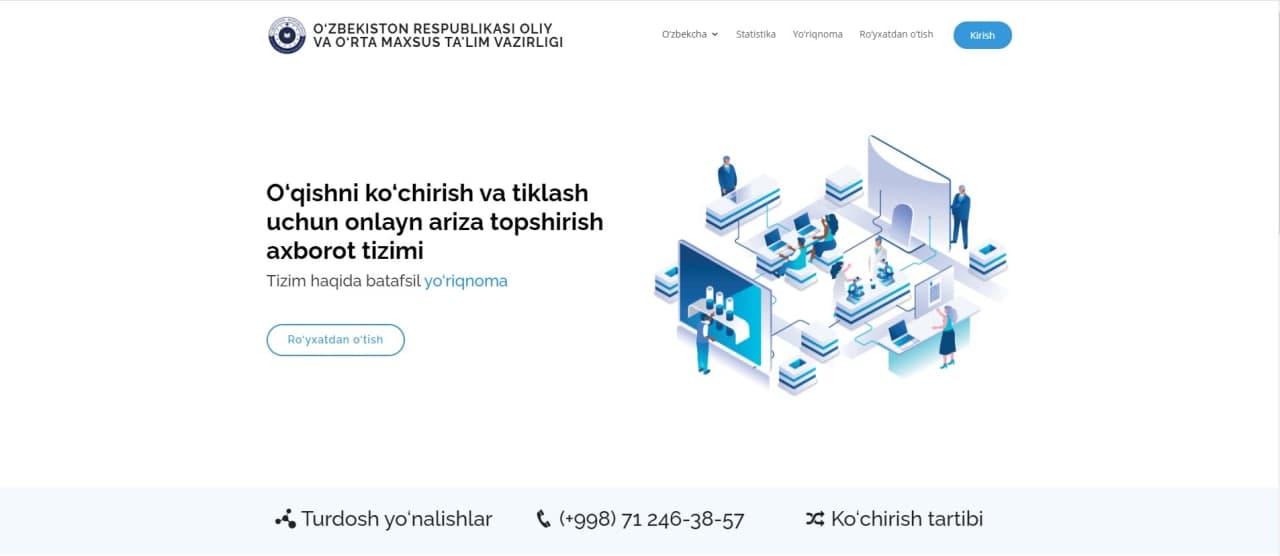 Республикамыздағы бир жоқары оқыў орнынан басқа жоқары оқыў орнына ямаса бир жоқары оқыў орны шеңберинде – transfer.edu.uz;
