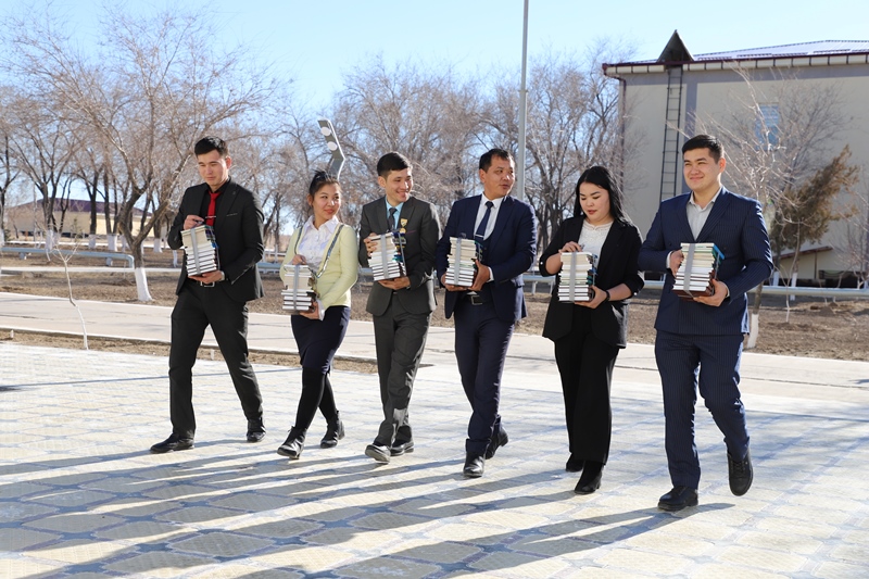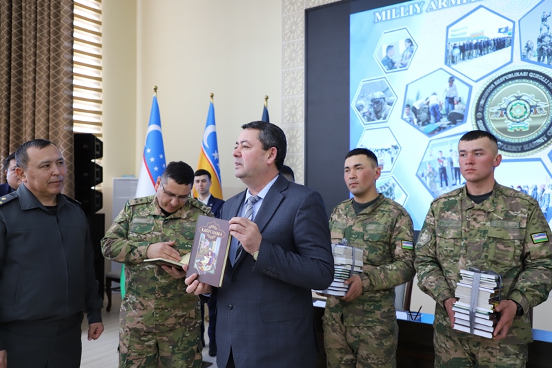 Prorektor Q.Qodirov institut jámááti tárepinen tayarlap kelingen kitaplardı áskeriy bólim xızmetkerlerine sawǵa etti.
