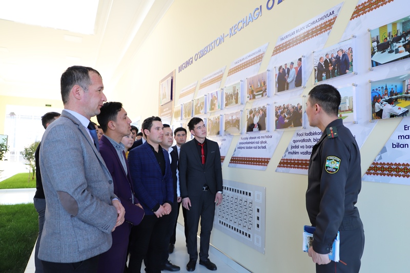 Institut jámááti áskeriy bólimde jańadan qurıp pitkerilgen ruwxıy-aǵartıwshılıq orayı, sport kompleksi, fitnes zalı, málimleme-resurs orayında múddetli áskeriy xızmetti atqarıp atırǵanlar hám shártnama tiykarında jumıs alıp barıp atırǵan áskeriy xızmetkerler ushın jaratılǵan sharayatlar menen tanıstı.