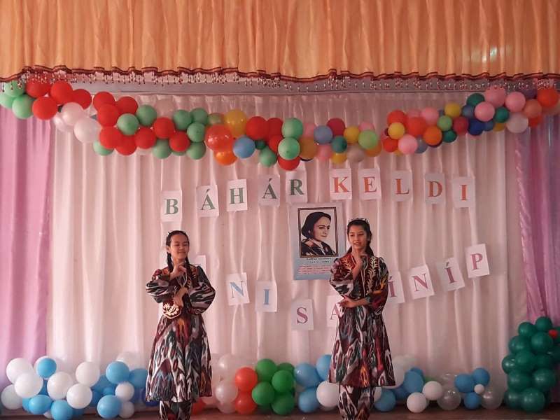 Zulfiya qosıqların obrazlı atqarıw, hár qıylı saxnalıq kórinisler jáne mektep foesinde shólkemlestirilgen jas xudojnikler hám ónerli balalar kórgizbesi jıynalǵanlar menen mektep oqıwshılarına joqarı ruwxıy zawıq baǵıshladı.