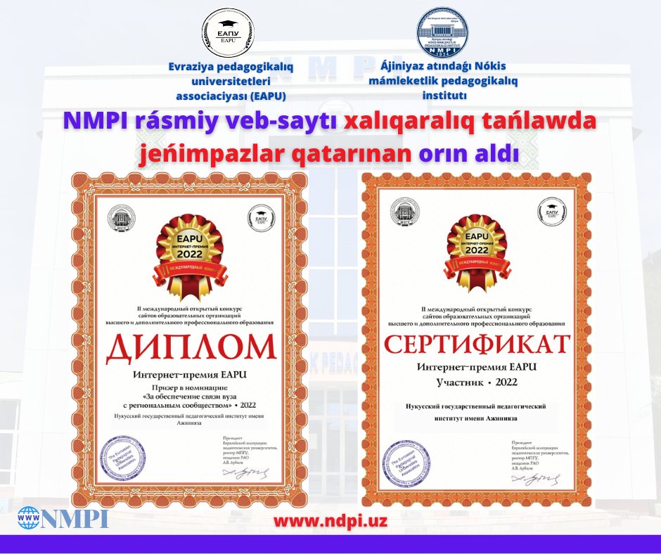 Xosh xabar! NMPI rásmiy veb-saytı xalıqaralıq tańlawda jeńimpazlar qatarınan orın aldı