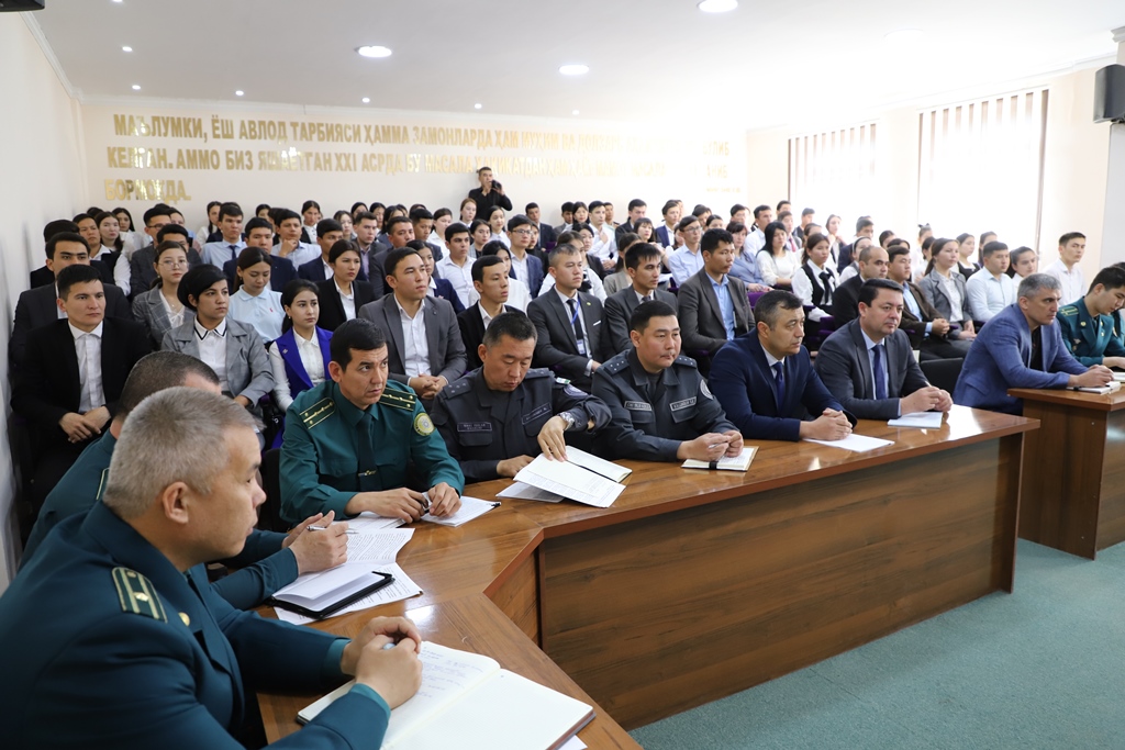 Ilajǵa Qaraqalpaqstan Respublikası Ishki isler ministri, polkovnik A.Orınbaev, Jaslar isleri agentligi Qaraqalpaqstan Respublikası basqarmasınıń baslıǵı I.Abdikalikov, sonday-aq, Qaraqalpaqstan Respublikası prokuraturası, Mámleketlik qáwipsizlik xızmeti Qaraqalpaqstan Respublikası basqarmasınan tiyisli juwapkerler, ishki isler uyımlarınıń tiyisli taraw basshıları, professor-oqıtıwshılar hám studentler qatnastı.