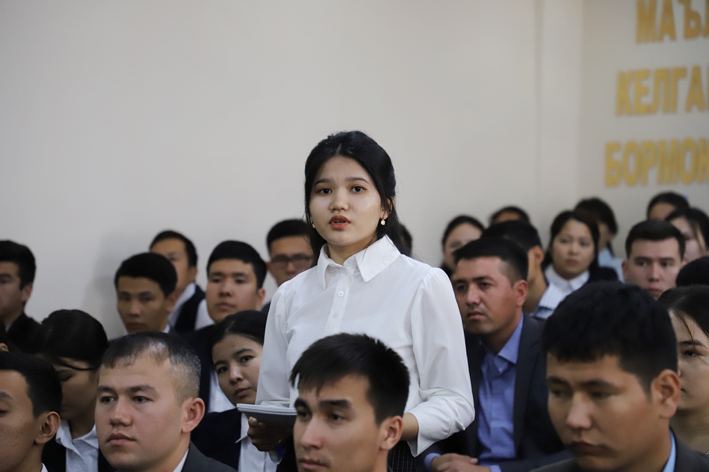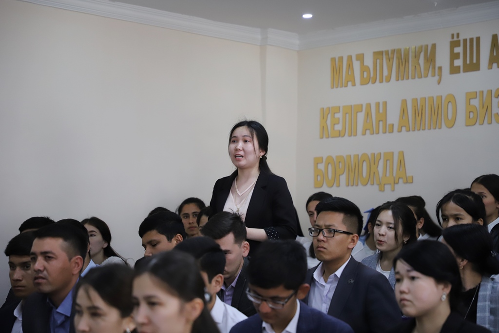 Ushırasıw dawamında tiyisli juwapkerler studentler menen ashıq sáwbetlesiw ótkerip, olardıń sorawlarına juwaplar berdi hám jaslardıń atap ótilgen máseleler boyınsha kózqarasların, pikir-usınısların tıńladı.