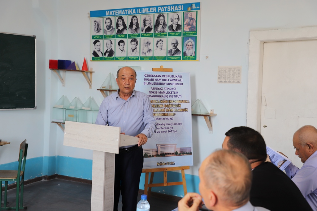 Búgin, 21-aprel kúni Ájiniyaz atındaǵı Nókis mámleketlik pedagogikalıq institutı matematikanı oqıtıw metodikası hám informatikanı oqıtıw metodikası kafedralarınıń shólkemlestiriwinde «Matematika hám informatika pánlerin oqıtıwdıń mashqalaları hám olardıń sheshimleri» atamasındaǵı respublikalıq ilimiy-ámeliy konferenciya óz jumısın basladı.