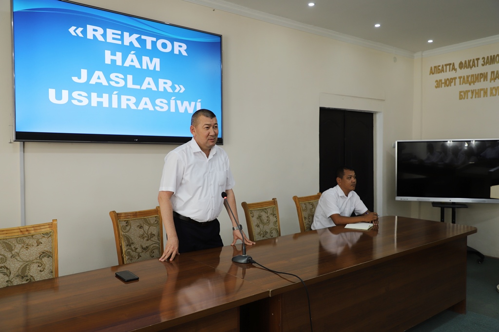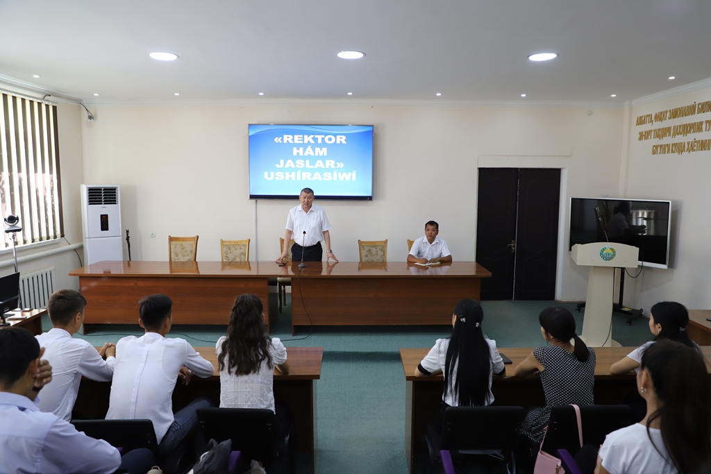 Ushırasıwda rektor Bayrambay Otemuratov institutta oqıtıwdıń sapasın arttırıw ushın ámelge asırılatuǵın jumıslar haqqında da jaslarǵa maǵlıwmatlar berdi.