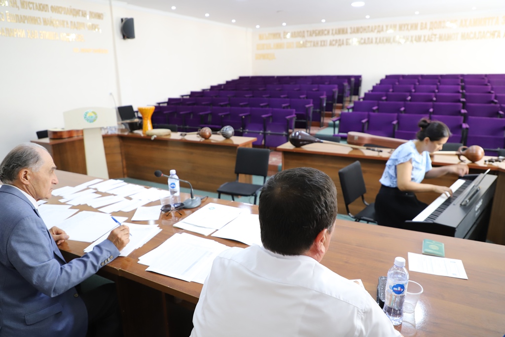 Búgin, 4-avgust kúni Ájiniyaz atındaǵı Nókis mámleketlik pedagogikalıq institutında bakalavriattıń muzıkalıq tálim baǵdarı sırtqı qaraqalpaq toparına qabıllaw ushın kásiplik (dóretiwshilik) imtixanlar ótkerilmekte.