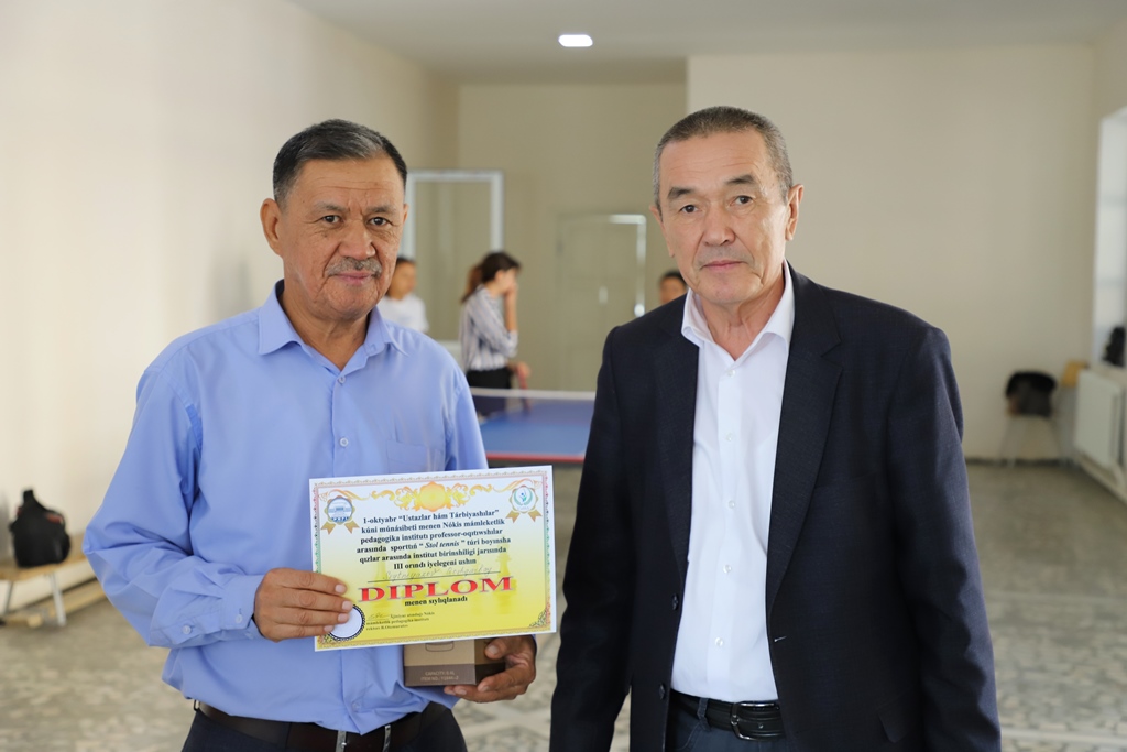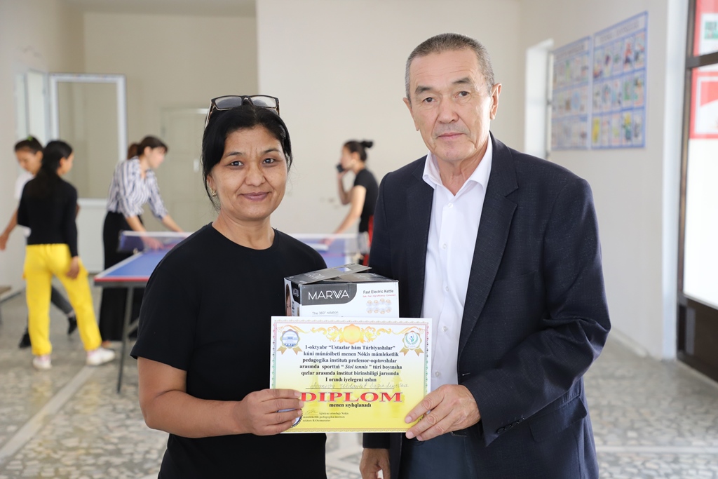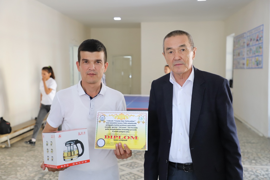 1-oktyabr – Muǵallimler hám ustazlar kúni múnásibeti menen Ájiniyaz atındaǵı Nókis mámleketlik pedagogikalıq institutı sport klubı tárepinen professor-oqıtıwshılar arasında stol tennisi hám shaxmat boyınsha jarıslar shólkemlestirildi.