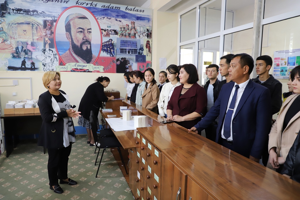 Sonıń menen birge, házirgi waqıtta 15 mıń atamadaǵı 157 mıńnan aslam kitap fondına iye bolǵan institutımızdıń málimleme-resurs orayında bolıp, bul jerdegi sharayatlarǵa joqarı baha berdi.