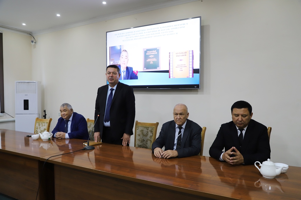 Ushırasıwda Qaraqalpaqstan xalıq muǵallimi, pedagogika ilimleriniń kandidatı, docent A.Pazılov jazıwshınıń ómiri hám dóretiwshiligi haqqında jıynalǵanlarǵa maǵlıwmatlar berip ótti.