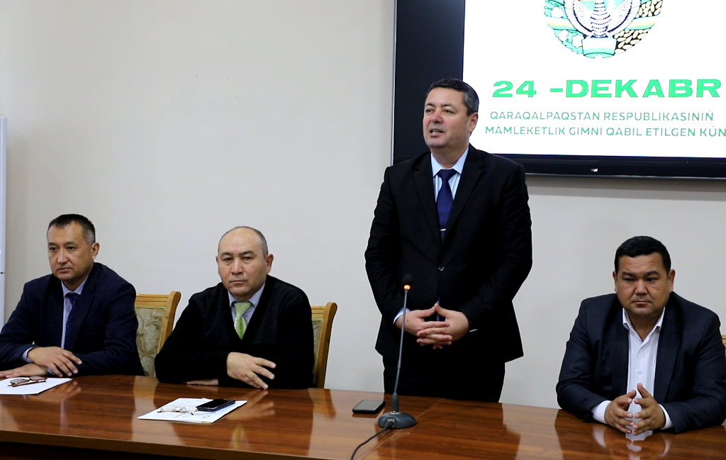 Ushırasıwda instituttıń muzıkalıq tálim kafedrasınıń baslıǵı Ayapbergen Allanov, usı kafedranıń oqıtıwshısı Jalǵasbay Qálmenov, Dene mádeniyatı fakulteti dekanınıń orınbasarı Ádilbay Seytbekovlar sózge shıǵıp, professor-oqıtıwshılar hám studentlerdi bayram menen qutlıqladı jáne 1993-jıl 24-dekabr kúni Qaraqalpaqstan Respublikası Joqarǵı Keńesiniń XIV sessiyasında qabıl etilgen respublikamız Mámleketlik gimniniń dóreliw tariyxı, búgingi kúndegi áhmiyeti haqqında keń túrde maǵlıwmatlar berdi.