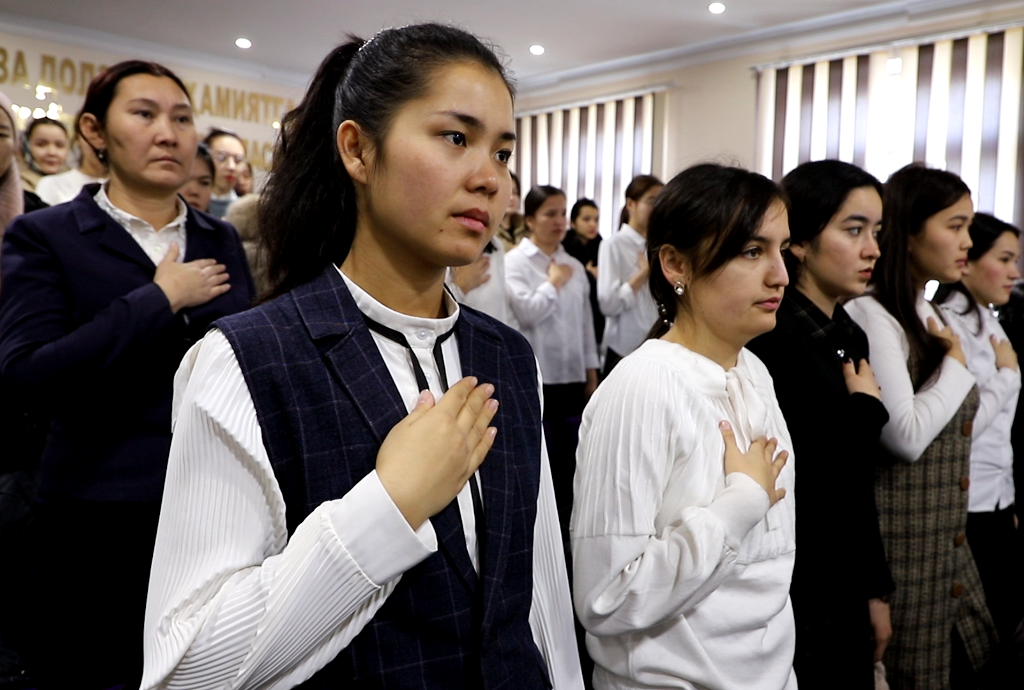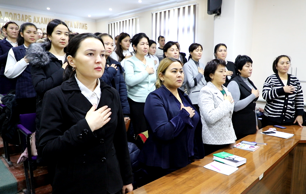 Ótkerilgen ilaj, sonday-aq, instituttıń barlıq auditoriyalarında búgingi sabaqlar Mámleketlik gimnler atqarılıwı menen baslandı.