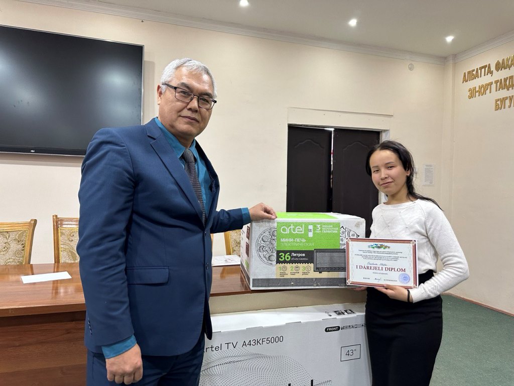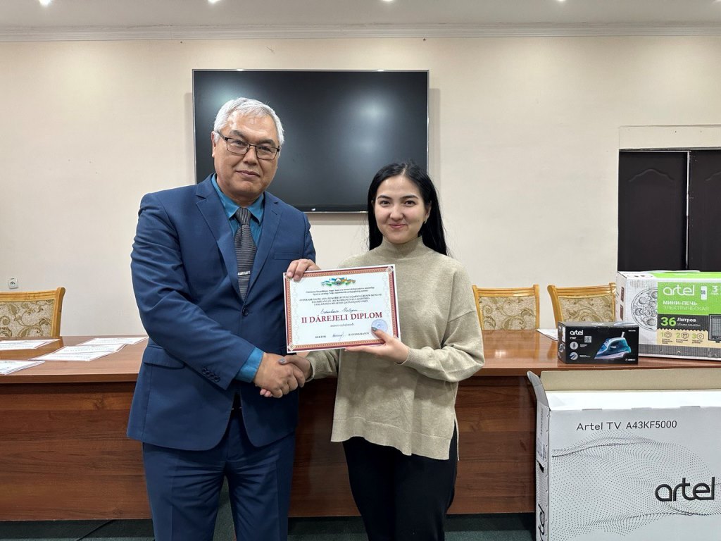 Tańlawda 1-orındı alǵan Shet tilleri fakultetine televizor, 2-orındı alǵan Baslawısh tálim fakultetine elektr pechi, 3-orındı iyelegen Pedagogika fakultetine utyug, al Dene mádeniyatı, Pedagogika, Fizika-matematika hám Baslawısh tálim fakultetleri studentlerine flesh-kartalar tapsırıldı.