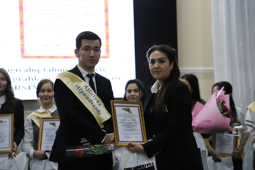 Ilajda institut rektorı B.Otemuratov, prorektorlar Q.Qodirov hám N.Babaniyazovalar sózge shıǵıp, mámleketlik stipendiyalar tańlawlarında, sonday-aq, ilimiy-izertlew jumıslarında úlken nátiyjelerge erisip atırǵan jaslardı qutlıqlap, olardıń oqıwı hám ilimiy jumıslarında tabıslar tiledi.