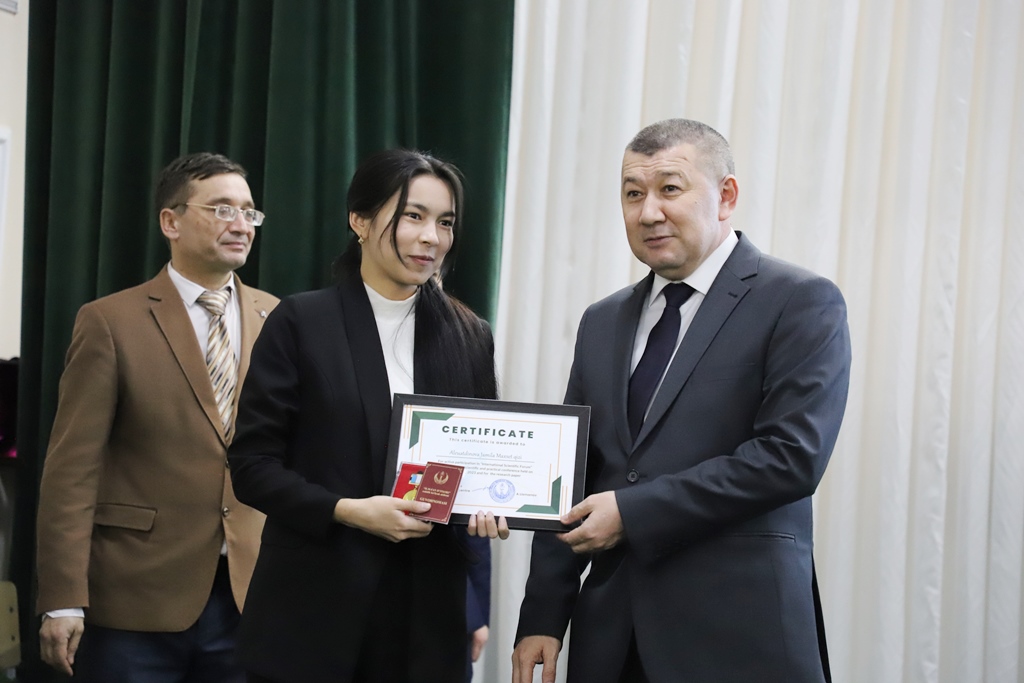 Sonıń menen birge, usı jıldıń yanvar ayında Tashkent qalasındaǵı Aldınǵı texnologiyalar ilimiy-izertlew orayı tárepinen ótkerilgen xalıqaralıq ilimiy forumda óz maqalaları menen qatnasıp, «Ilim maqtanıshı» estelik belgisi hám sertifikatlar menen sıylıqlanǵan bir topar studentler, magistrantlar xoshametlendi.
