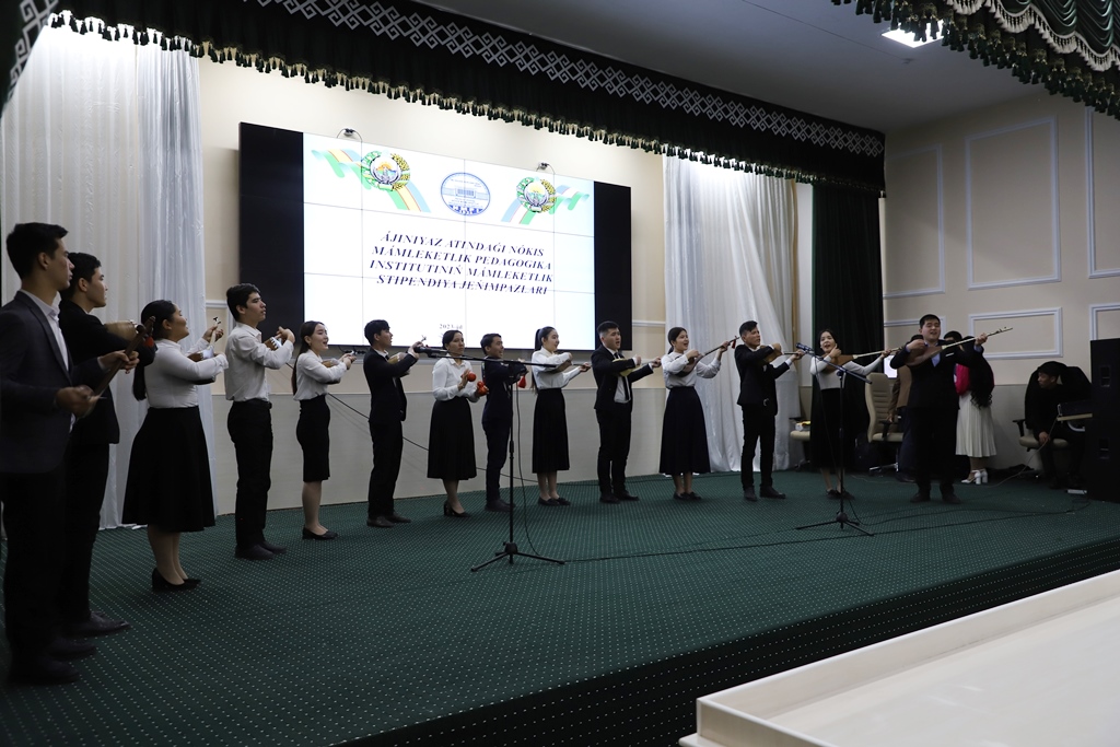 Ájiniyaz atındaǵı Nókis mámleketlik pedagogikalıq institutında 2022-2023-oqıw jılı ushın respublikalıq joqarı oqıw orınlarınıń bakalavriat basqıshı studentleri arasında Ózbekstan Respublikası Prezidenti hám ataqlı mámleketlik stipendiyalarǵa múnásip dep tabılǵan studentler, sonday-aq, instituttıń Ájiniyaz Qosıbay ulı atındaǵı stipendiyası tańlawlarında jeńimpaz bolǵan studentlerge gúwalıqlar tapsırıwǵa arnalǵan saltanatlı ilaj bolıp ótti.