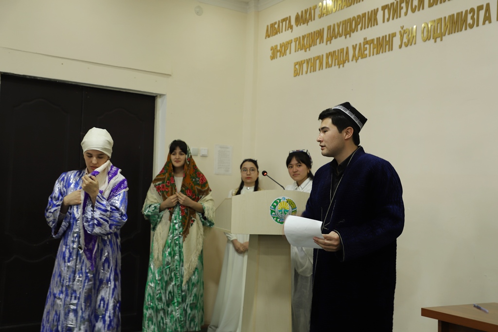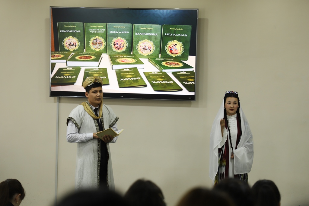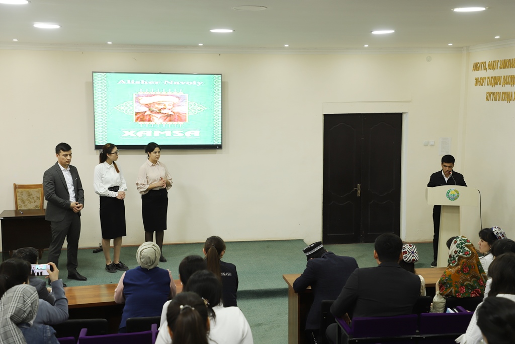 Tańlawda 3-kurs studentleri «Hamsa» shıǵarmasınıń dóreliw tariyxı, mazmunı, túrkiy hám shıǵıs xalıqları ádebiyatındaǵı tutqan ornı haqqında maǵlıwmatlar beriw, soraw-juwaplar hám saxnalıq kórinis sıyaqlı shártler tiykarında sabaqlarda ózlestirgen bilim hám kónlikpelerin kórsetiwge háreket etti.