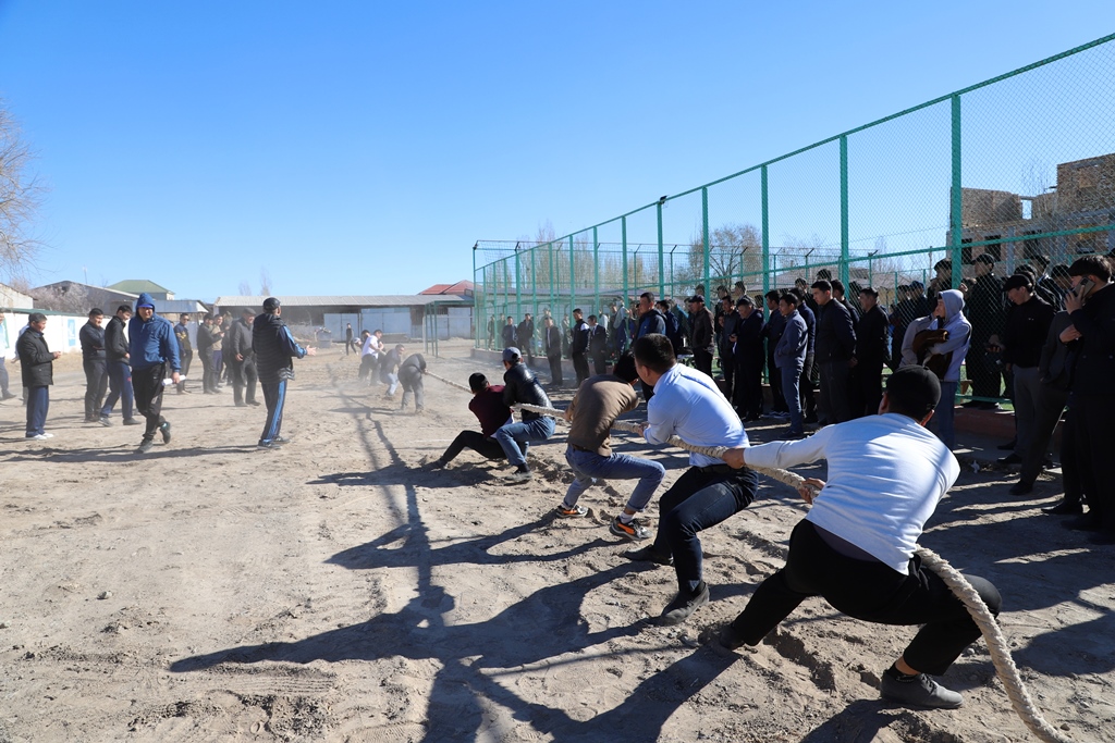 Fakultetlerde oqıp atırǵan studentler ata-babalarımızdan miyras bolıp kiyatırǵan milliy gúres, tas kóteriw, arqan tartısıw, lángi, qol gúresi hám láylek ushırıw boyınsha ózleriniń imkaniyatların sınaqtan ótkerdi.