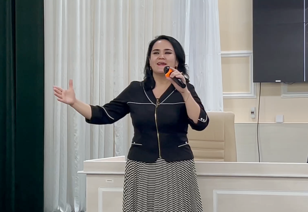 Keshede kórkem óner sheberleri hám instituttıń muzıkalıq tálim baǵdarınıń talantlı studentleri kompozitor Marqabay Jiyemuratov hám shayır Nábiyra Tóreshovanıń dóretpelerinen qosıqlar atqardı.