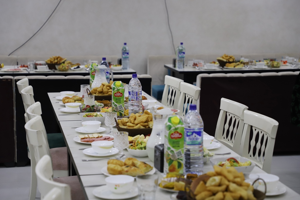 Usınday sharapatlı kúnlerde xalqımızdıń duwa-pátiyasın alıw, ómirlik tájiriybesi mol jasıúlkenler menen bir dasturxan átirapında otırıp gúrrińlesiw, keńeslerin alıw maqsetinde Ájiniyaz atındaǵı Nókis mámleketlik pedagogikalıq institutı rektoratı hám kásiplik awqamı komiteti tárepinen iftarlıq dasturxanı jayıldı.