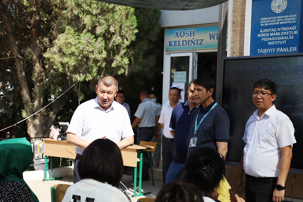Sonday-aq, usı jerde abiturientlerdiń ata-anaları ushın jaratılǵan sharayatlar, test procesin onlayn baqlaw imkaniyatı menen tanıstı. Ata-analar menen bolıp ótken sáwbetlesiwde Qaraqalpaqstan Respublikası abiturientleri ushın bıyılǵı qabıllawda mámleketlik grant tiykarında 3 mıń orın ajıratılǵanı, sonıń menen birge, jaslardı joqarı bilimlendiriwge qamtıp alıw baǵdarında ámelge asırılıp atırǵan jumıslar haqqında maǵlıwmatlar berdi.
