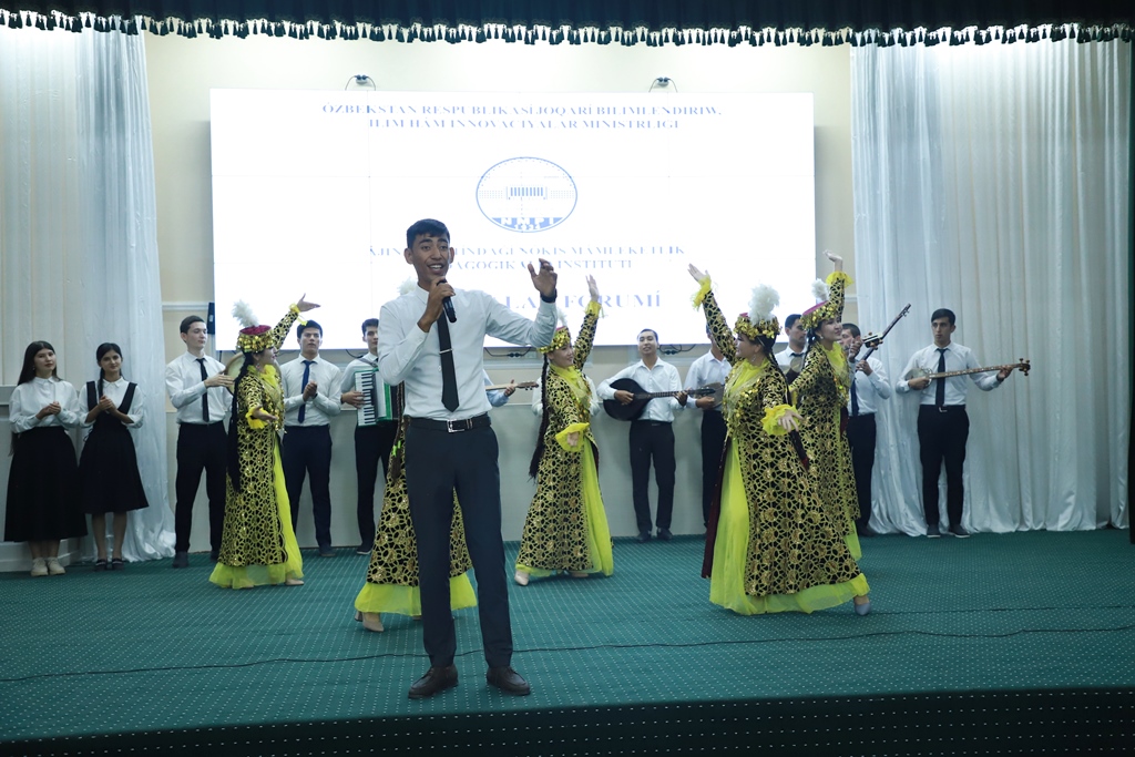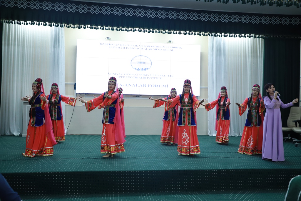 Forumda instituttıń «Tumaris» qosıq hám ayaq-oyın xalıq ansambli, sonday-aq, talantlı studentleriniń atqarıwındaǵı koncert baǵdarlaması qatnasıwshılarǵa bir dúnya ruwxıy zawıq baǵıshladı.