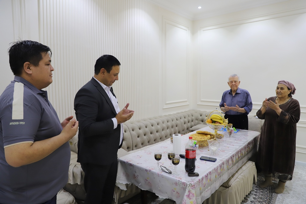 Institut rektoratı hám fakultet dekanatı wákilleri bayram múnásibeti menen nuranıy ustazdıń úyine barıp, bir kese chay ústinde sáwbetlesip, hal-jaǵdayınan xabar aldı.