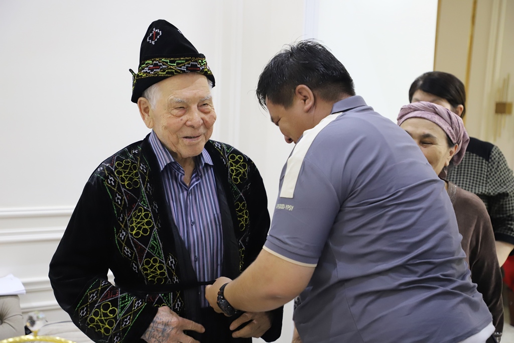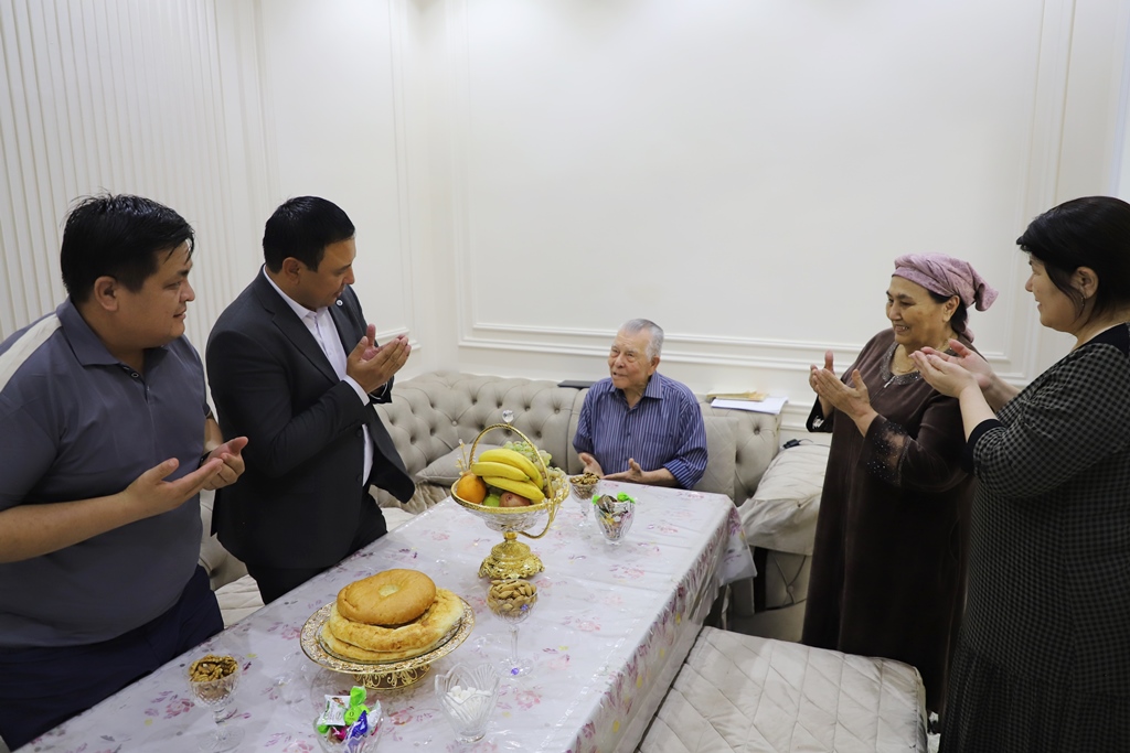 Institut rektoratı hám fakultet dekanatı wákilleri bayram múnásibeti menen nuranıy ustazdıń úyine barıp, bir kese chay ústinde sáwbetlesip, hal-jaǵdayınan xabar aldı.