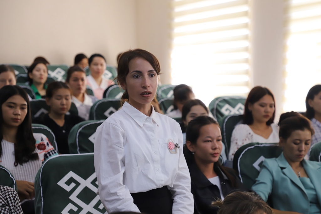 Ushırasıwda «Doslıq» ordeniniń iyesi, «Tashabbus» tańlawınıń respublikalıq basqıshı jeńimpazı, «Belsendi isbilermen» kókirek belgisiniń iyesi Amina Begjanova ózi basshılıq etip atırǵan turistlik firmanıń jumısları, onıń shólkemlestiriliwi, elimizde isbilermenlikti, sonıń ishinde, tarawda hayal-qızlardıń belsendiligin qollap-quwatlaw baǵdarında ámelge asırılıp atırǵan jumıslar haqqında maǵlıwmat berdi.