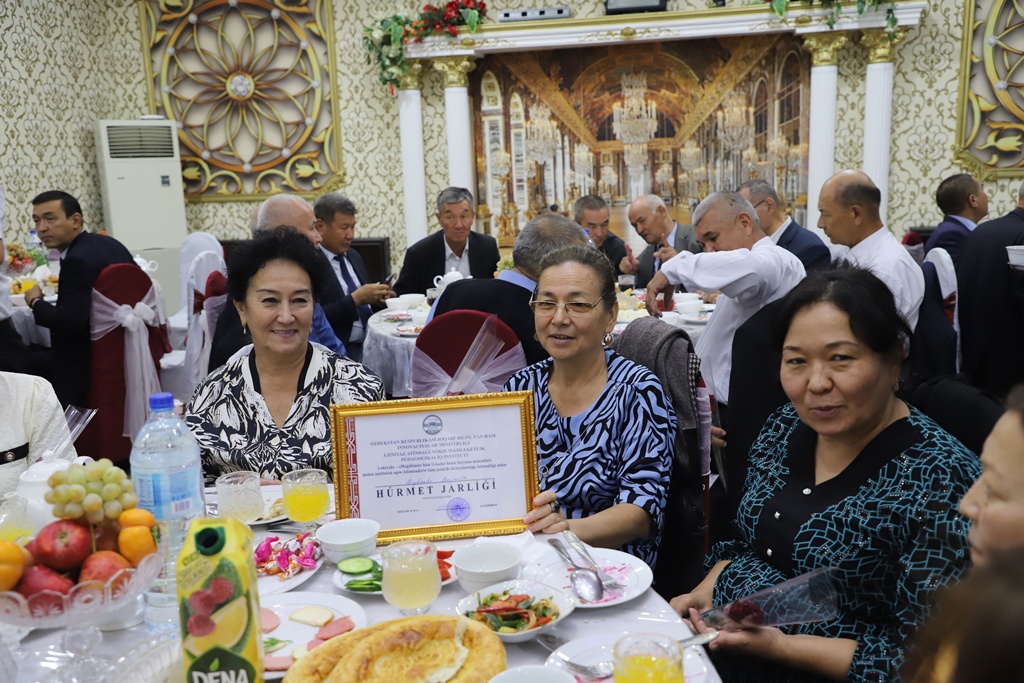Bayram keshesinde Joqarı bilimlendiriw, ilim hám innovaciyalar ministriniń buyrıǵı menen joqarı bilimlendiriw tarawında shın hújdanı menen jumıs alıp barıp, jas áwladtıń sapalı bilim alıwında óziniń pidayı miynetleri menen úlgi bolıp kiyatırǵan, sistemanıń rawajlanıwı ushın óziniń múnásip úlesin qosıp atırǵan institutımızdıń bir topar pidayı professor-oqıtıwshılarına «Joqarı bilimlendiriw aǵlası» kókirek belgisi saltanatlı túrde tapsırıldı.