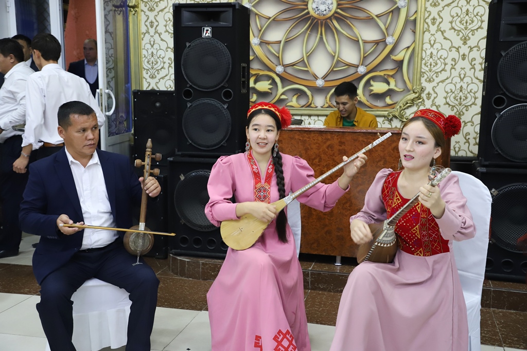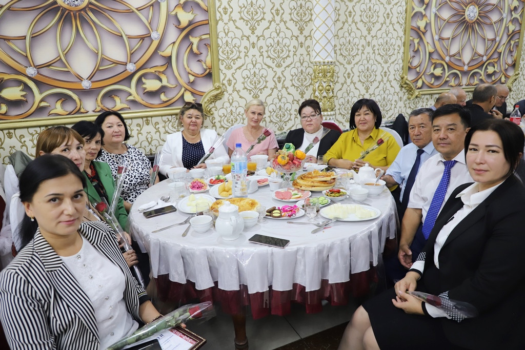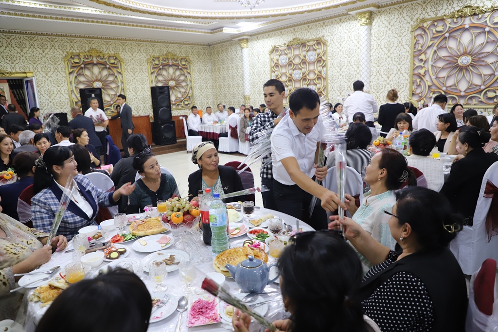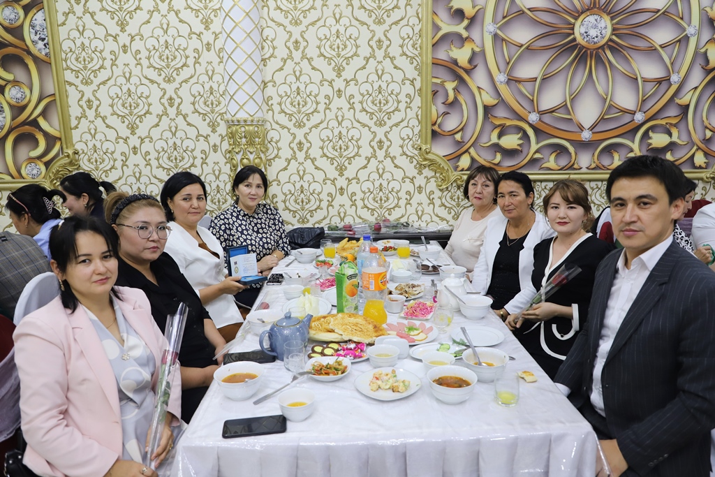 Professor-oqıtıwshılar, pedagog xızmetkerler hám ustazlar bayram dasturxanı átirapında bir-biri menen sáwbetlesip, kóterińki keypiyatta bayramladı.
