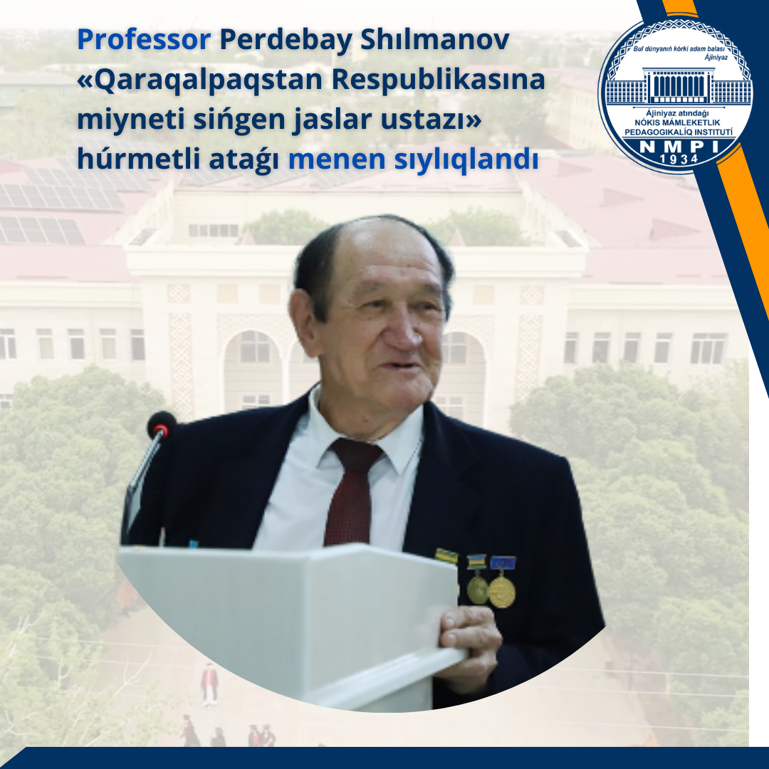 1-oktyabr – Muǵallimler hám ustazlar kúni múnásibeti menen Ájiniyaz atındaǵı Nókis mámleketlik pedagogikalıq institutı dene tárbiyası kafedrasınıń professorı, húrmetli ustaz Perdebay Shılmanov Qaraqalpaqstan Respublikası Joqarǵı Keńesi Prezidiumınıń qararına muwapıq «Qaraqalpaqstan Respublikasına miyneti sińgen jaslar ustazı» húrmetli ataǵı menen sıylıqlandı.