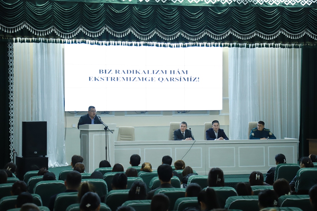 Ájiniyaz atındaǵı Nókis mámleketlik pedagogikalıq institutı Pedagogika fakultetinde «Biz – radikalizm hám ekstremizmge qarsımız!» atamasında tiyisli taraw wákilleri qatnasıwında profilaktikalıq úgit-násiyat ushırasıwı bolıp ótti.