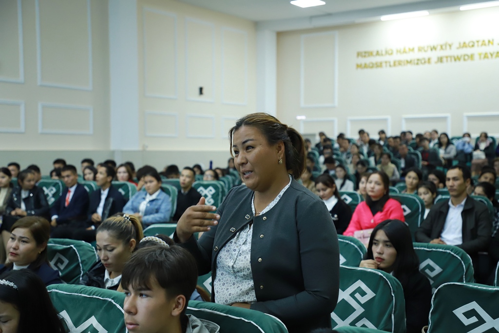 Ilajda sózge shıqqanlar jaslar menen birgelikte alıp barılatuǵın úgit-násiyat jumıslarına toqtalıp, olardıń qızıqtırǵan sorawlarına tolıq juwap berdi.