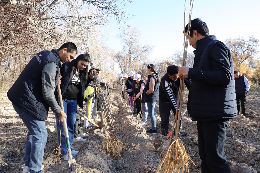 Búgin, 14-noyabr kúni instituttıń Fizika-matematika fakulteti jámááti hám studentleri, sonday-aq, jaslar awqamı baslanǵısh shólkemi jetekshileri, koordinatorları, studentler keńesi belsendileri instituttıń dala oqıw-ámeliyatı mandanshasında bos jerlerge 2 mıńǵa shamalas hár qıylı dekorativ hám miywe terek nállerin otırǵızdı.