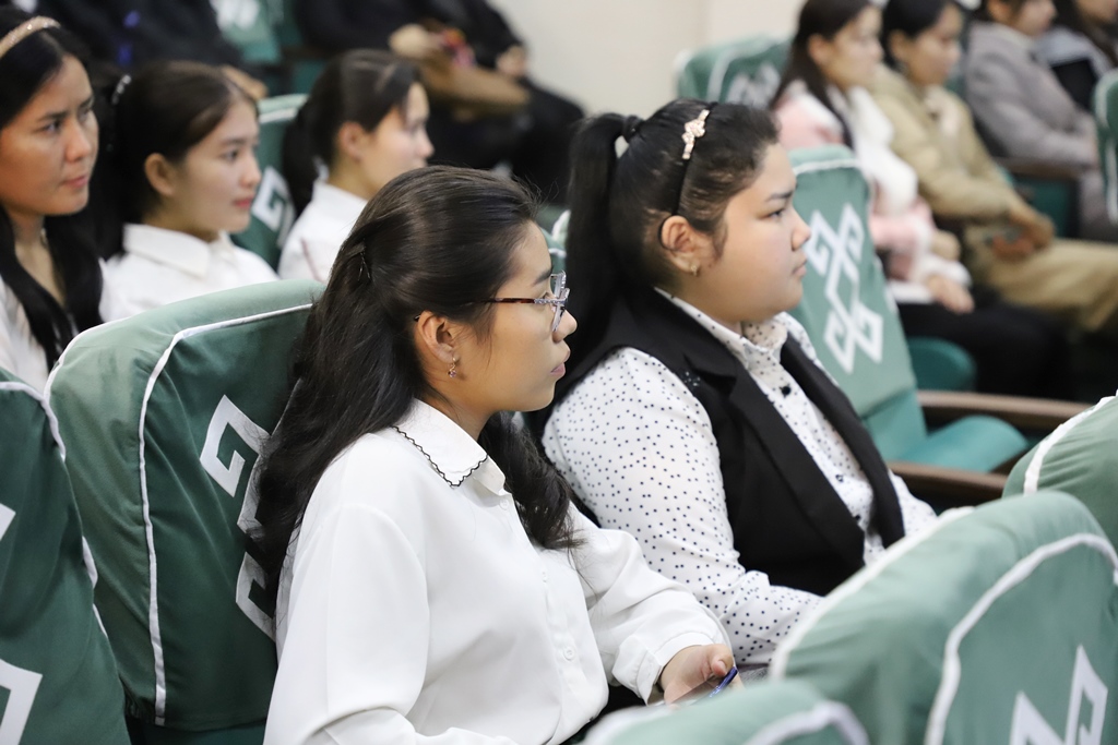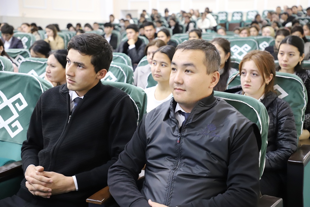 Sonıń menen birge, ózleriniń qolǵa kirgizgen tabısları haqqında aytıp, studentlerdiń sorawlarına juwaplar berdi.