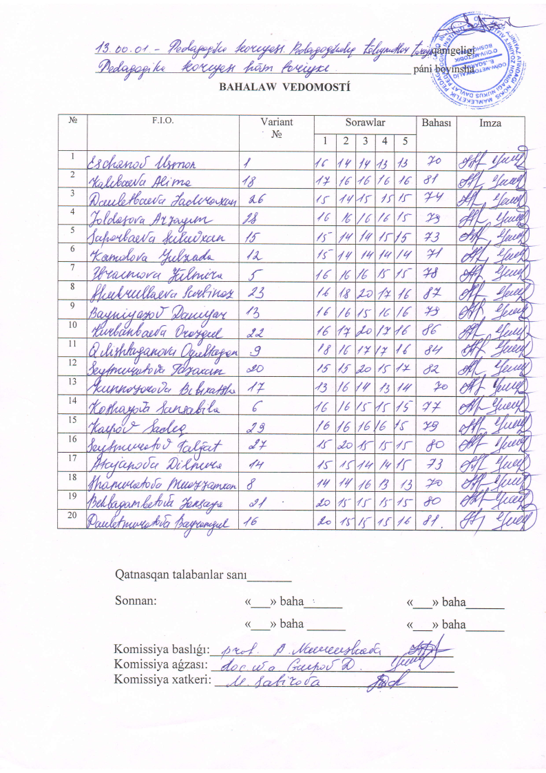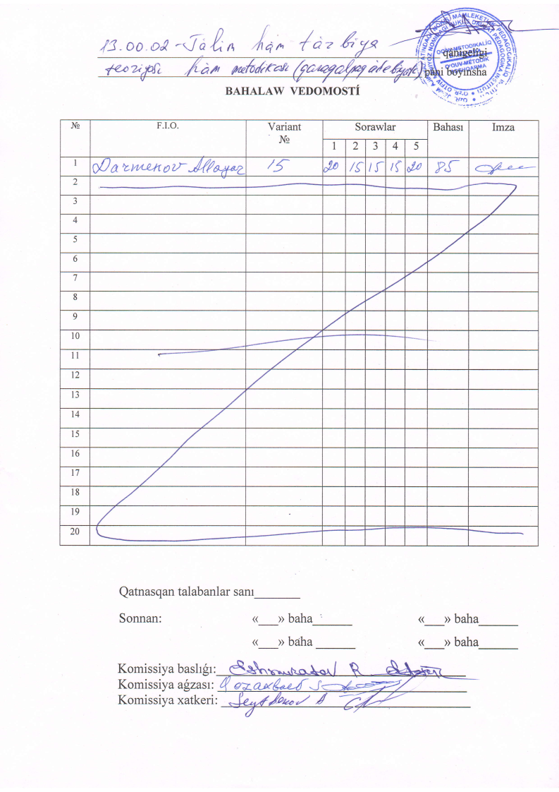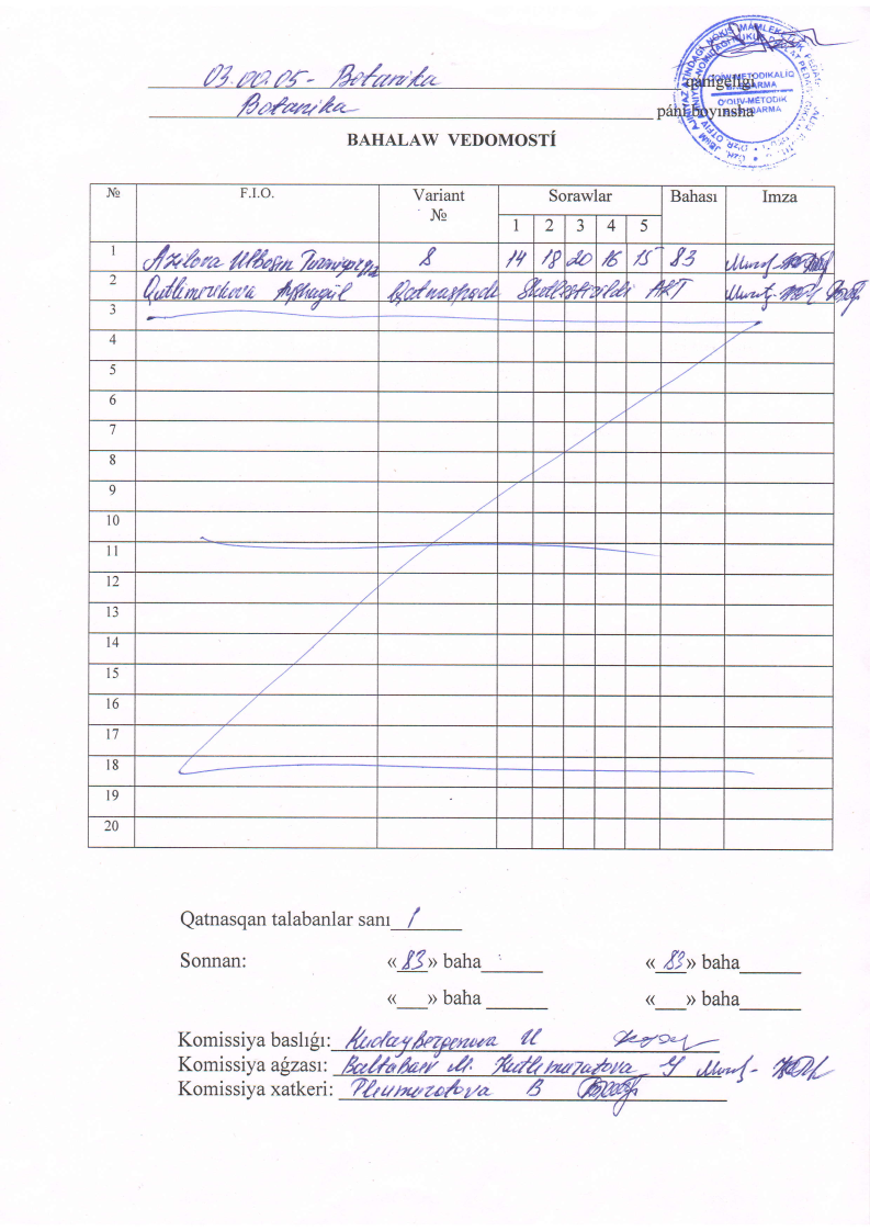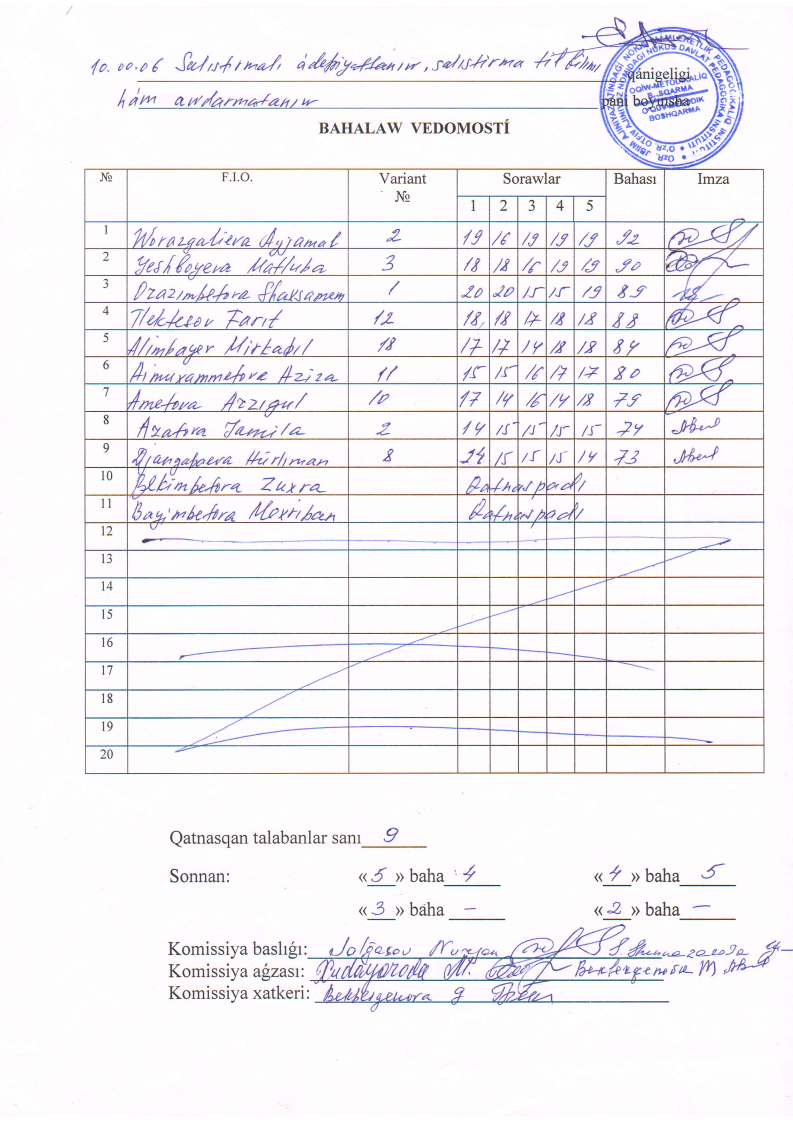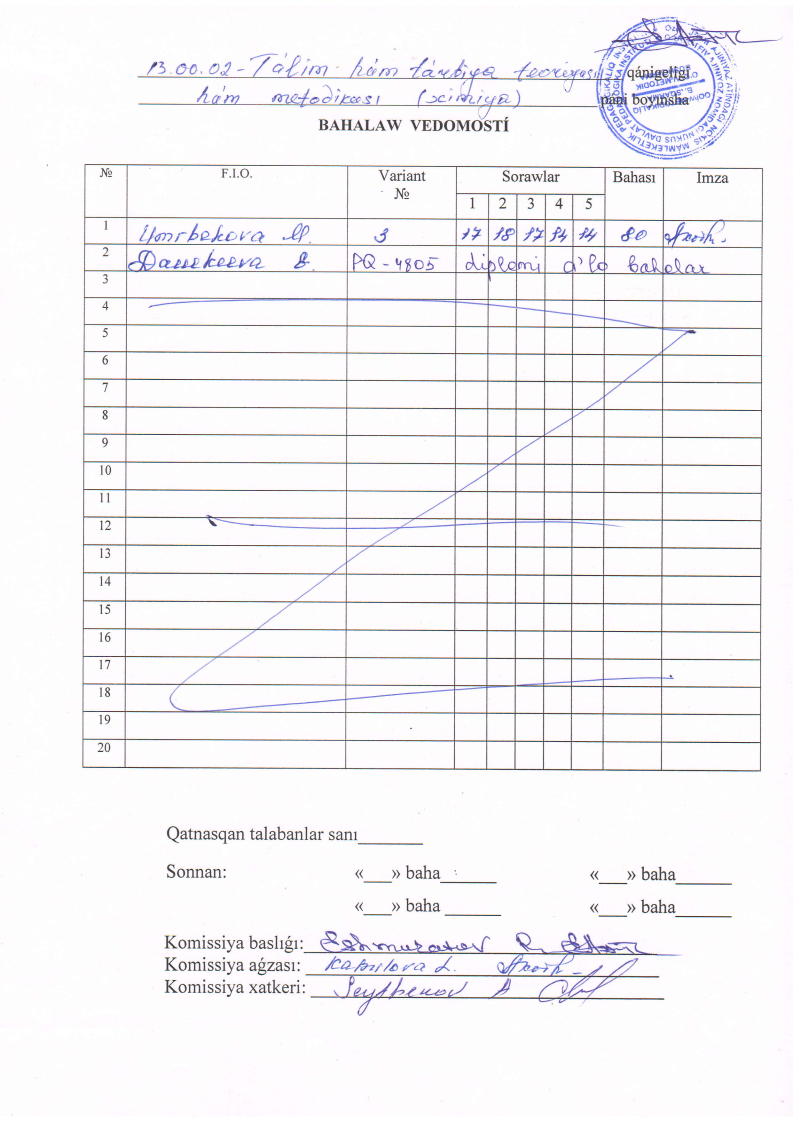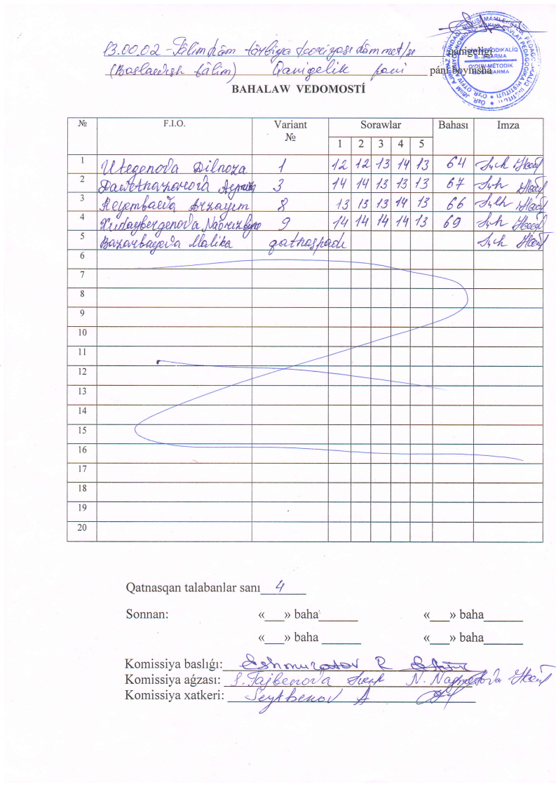 Imtixan nátiyjeleri menen kórsetilgen PDF formattaǵı fayldı júklep alıw arqalı tolıq tanısıwıńız múmkin.