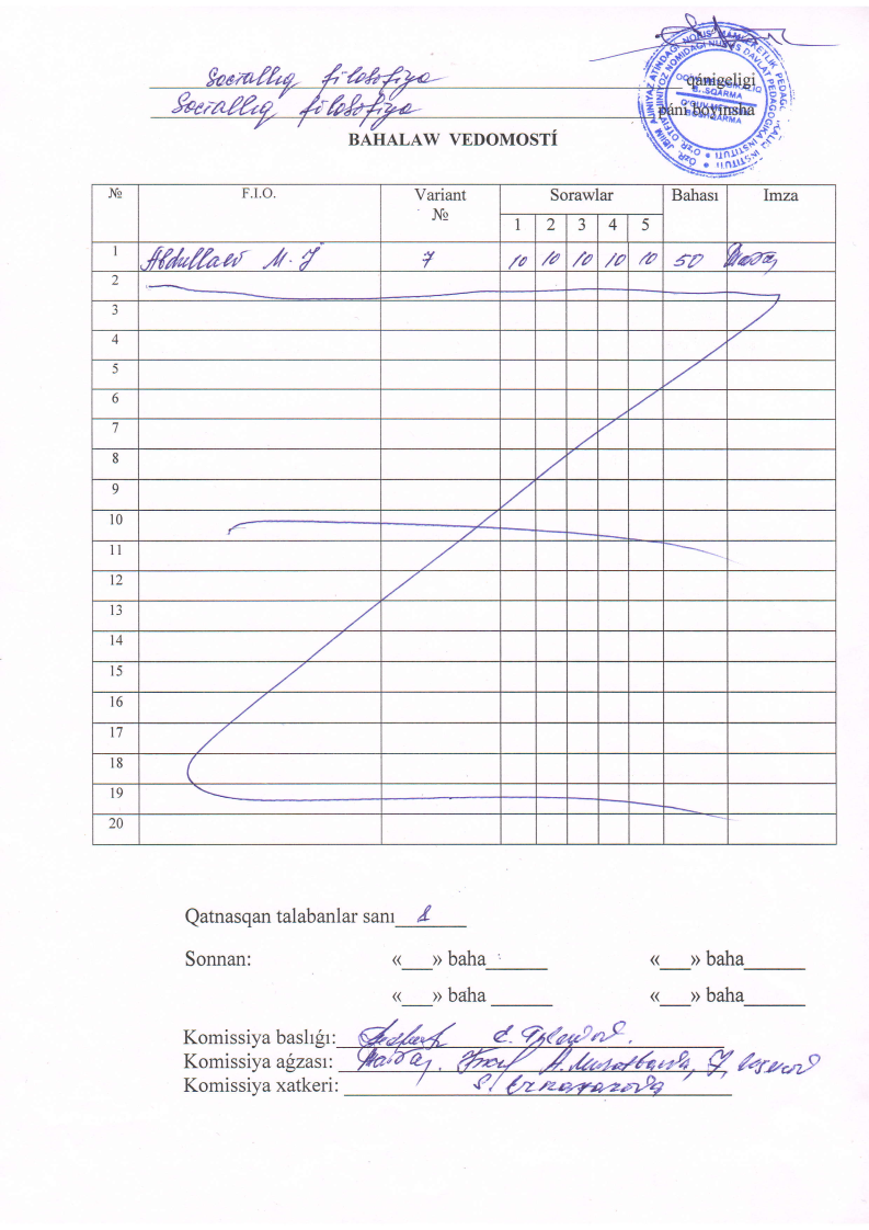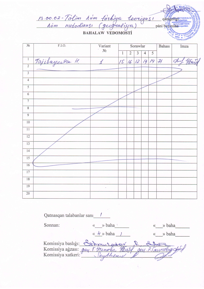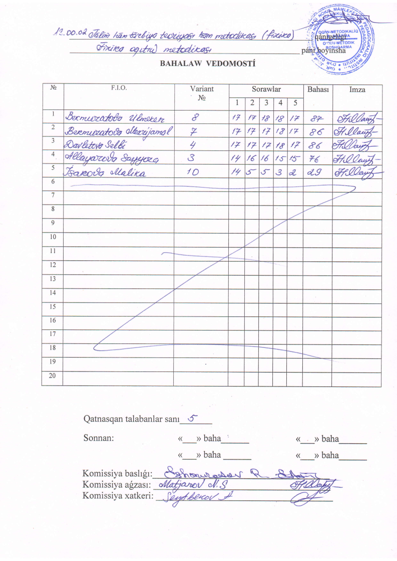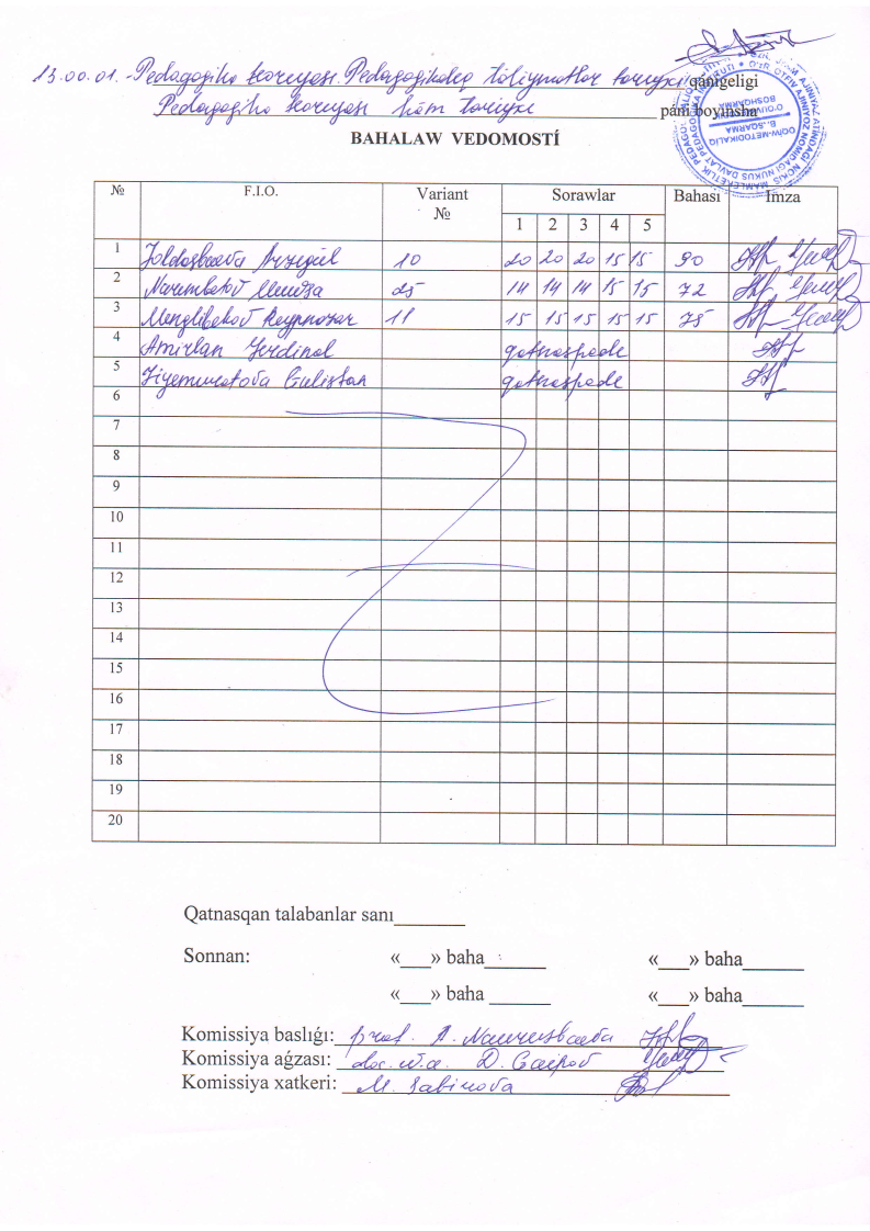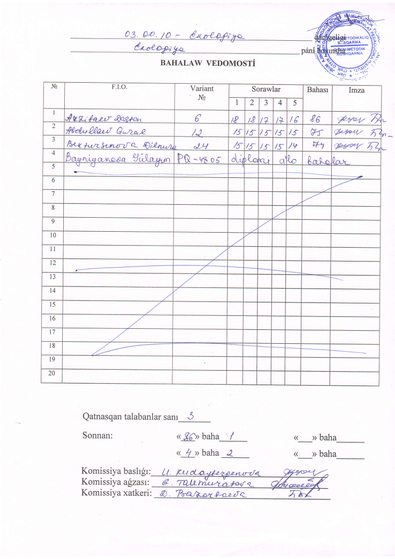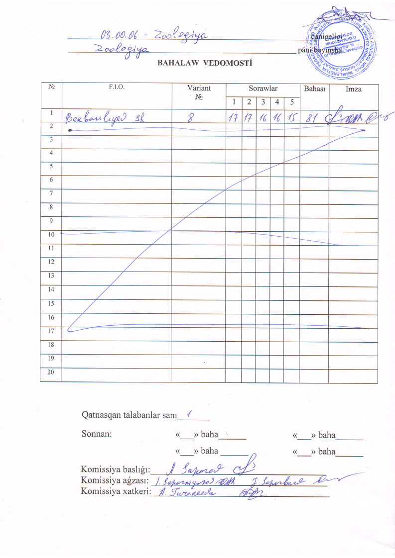 Imtixan nátiyjeleri menen kórsetilgen PDF formattaǵı fayldı júklep alıw arqalı tolıq tanısıwıńız múmkin.