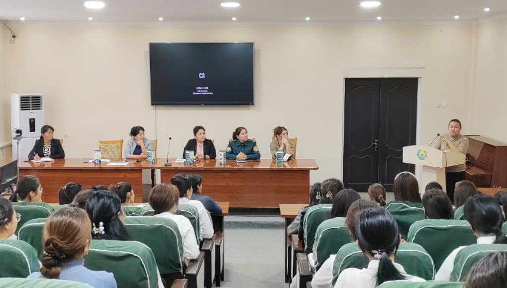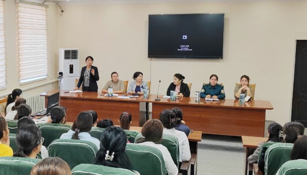 Ilajǵa Qaraqalpaqstan Respublikası Reabilitaciya orayı yuristi B.Arzieva, usı oraydıń qánigesi I.Esenova, instituttıń hayal-qızlar máseleleri boyınsha profilaktikalıq inspektorı, leytenant M.Narımbetova, psixologiya kafedrasınıń docenti M.Jolımbetova, fakultet dekanlarınıń másláhátshileri, tyutorlar hám studentler qatnastı.